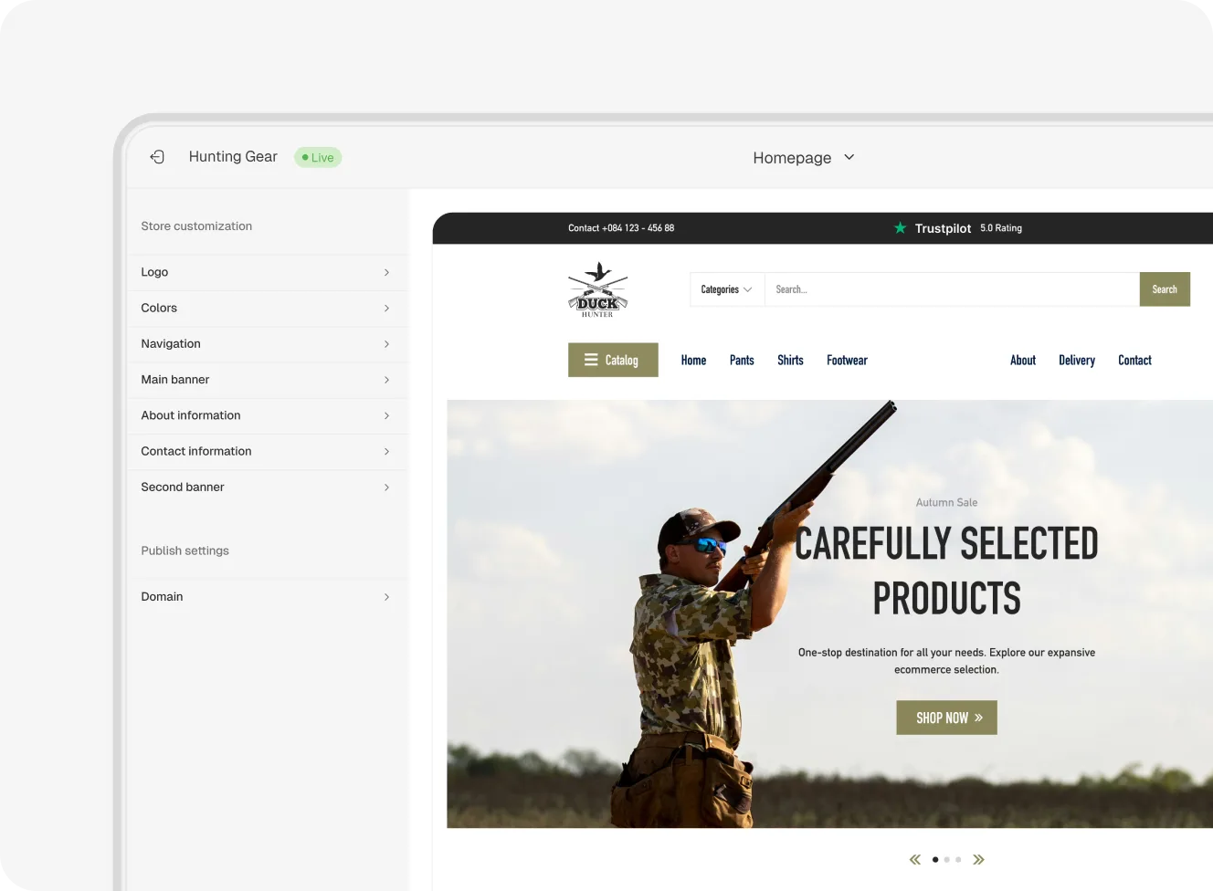 - Branded storefront with your logo, banners, and story