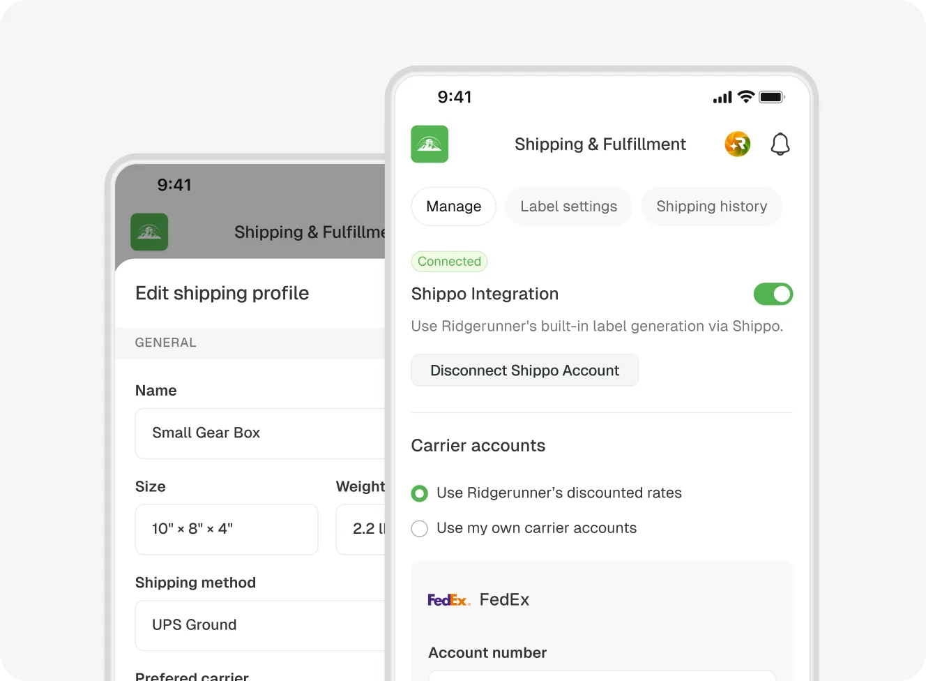 Yes. You can connect your own shipping carriers directly to Ridgerunner, giving you full control over your logistics and fulfillment. Or you can use Ridgerunner’s direct shipping integration for discounted rates.